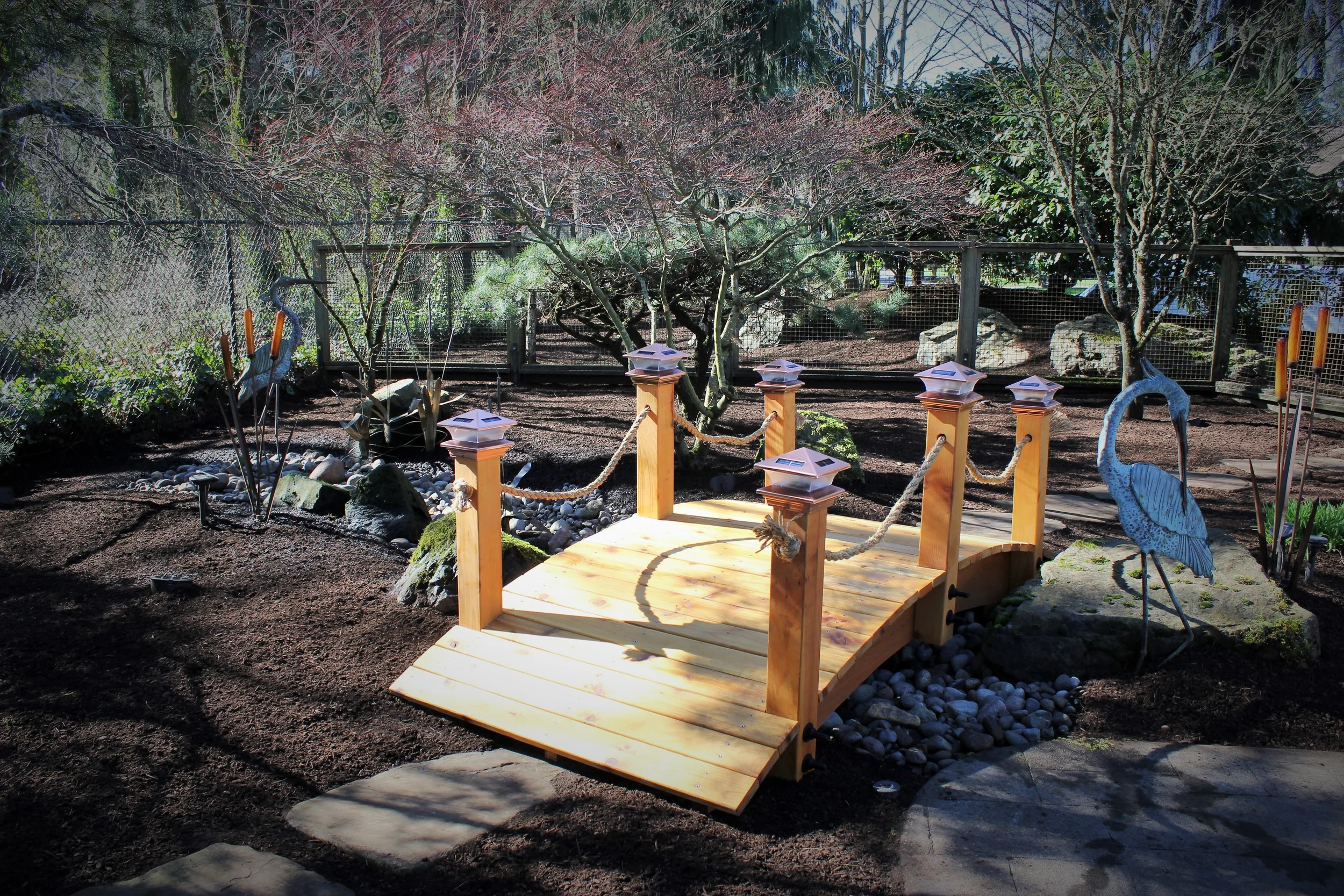 Royal Garden’s also builds beautiful garden bridges, hand-crafted by Chris Skelton. After spending hundreds of hours researching bridge design and material construction, as well as training with McCully Contracting Specialists, Chris has originated a framework that merges superior design with the highest quality materials available to bring you a beautiful bridge that will stand the test of time and surpass the elements. We use only Cedar wood, as it resists weathering, decay, and insect damage, while the stainless steel screws and galvanized bolts resist everything.